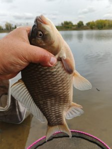 Бель начинает капризничать, думаю из-за похолодания. Но около десятка сорожек и столько же подлещиков, и одного карасика все-же уговорил.
